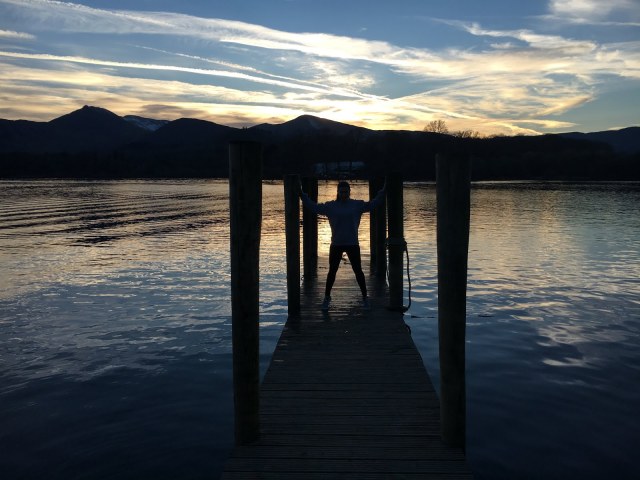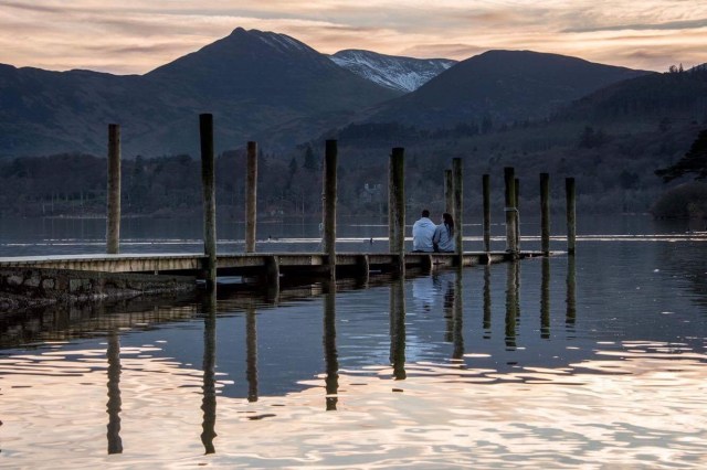 In order to get a spot staked out for our hotel on wheels, we hopped back in the van and headed for the next town. Keswick is a charming little town filled with markets located on the Derwentwater lake. We beelined for the lake to catch the sunset before dinner. My advice: Always choose to watch the sunset. I never pass up on it, and this trip was no exception! We plopped ourselves down on the end of a dock to watch the sun slowly sink behind the mountains.