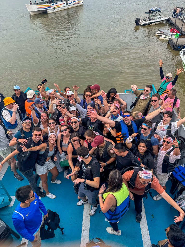 We then headed into the colorful town nearby for lunch and were greeted by a band in the small plaza. They started with Coldplay and quickly went into an array of songs—both English and Spanish. It was an awesome surprise that the tour guides planned, and we were happy to jump in and start dancing. The day only got better as we had a traditional lunch before boarding a boat cruise. Little did I know, this boat cruise would turn into another full-blown aguardiente waterboarding session complete with a grand UCLA by Grimes finale. Thankfully, the day remained relatively tame and we were still able to make it to our last lovely dinner in Medellín in good form.